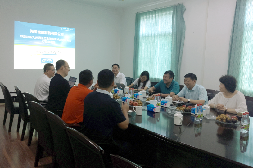 2018年0725日,九州通醫藥集團董事長劉樹林先生一行蒞臨海南全星制藥有限公司調研并指導工作。全星制藥董事長劉全勝先生攜公司領導班子一同參加了座談會,并對劉樹林先生一行的到來表示熱烈的歡迎。雙方就企業的發展愿景及醫藥行業的發展前景展開了討論。